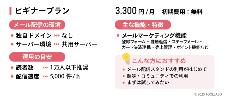 ビギナープランは、メルマガを試してみたい初心者や、予算を極力抑えたい方に適しています。
