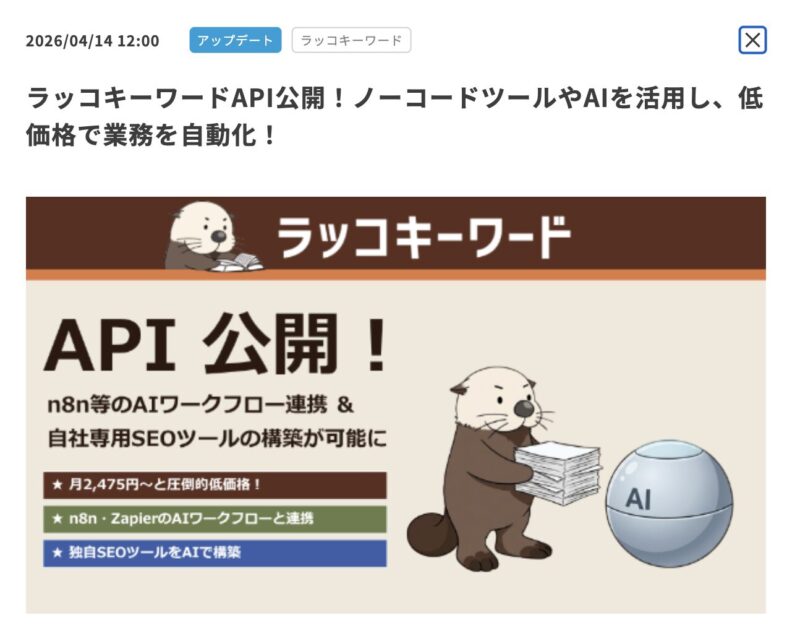ラッコキーワードAPI公開!ノーコードツールやAIを活用し、低価格で業務を自動化!