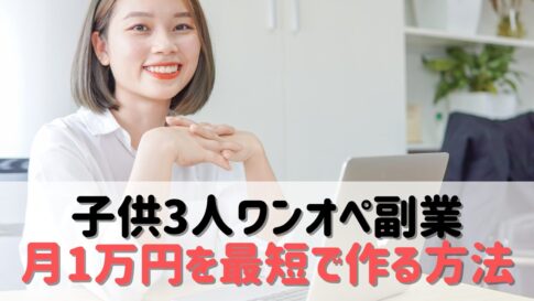 子ども3人ワンオペ育児中でもできる副業を解説。月1万円を最短で作るための時間の作り方、副業選び、在宅ワーク例まで具体的に紹介します。