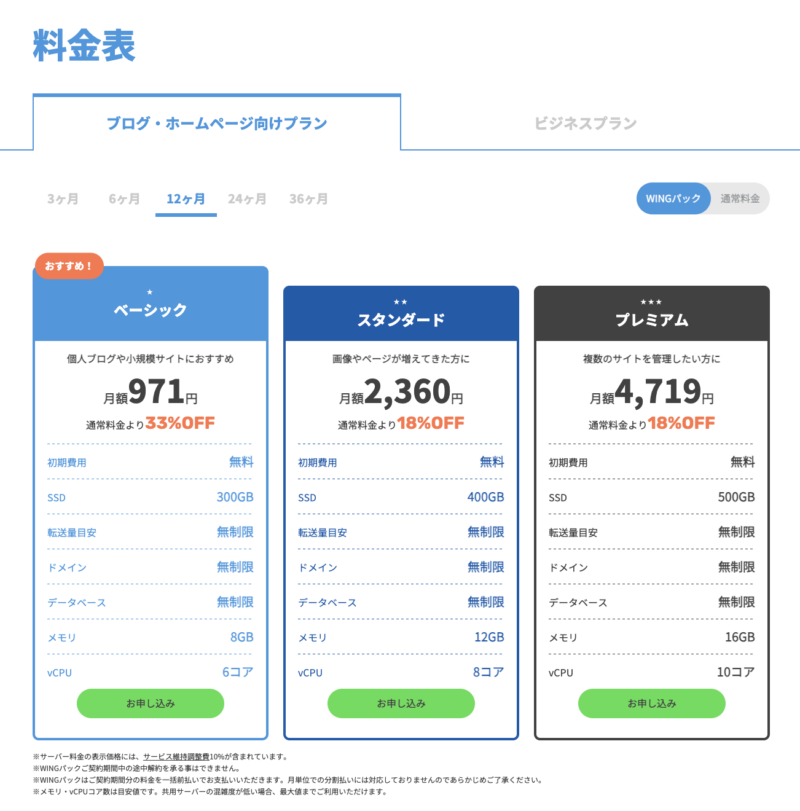 - ベーシック:個人ブログや小規模サイト向け(人気No.1)