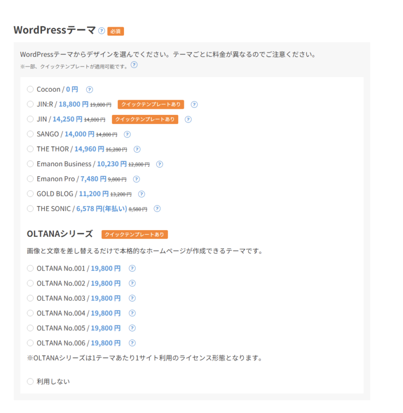 ②プランと契約期間を選ぶ(テーマ・オプションの選択)