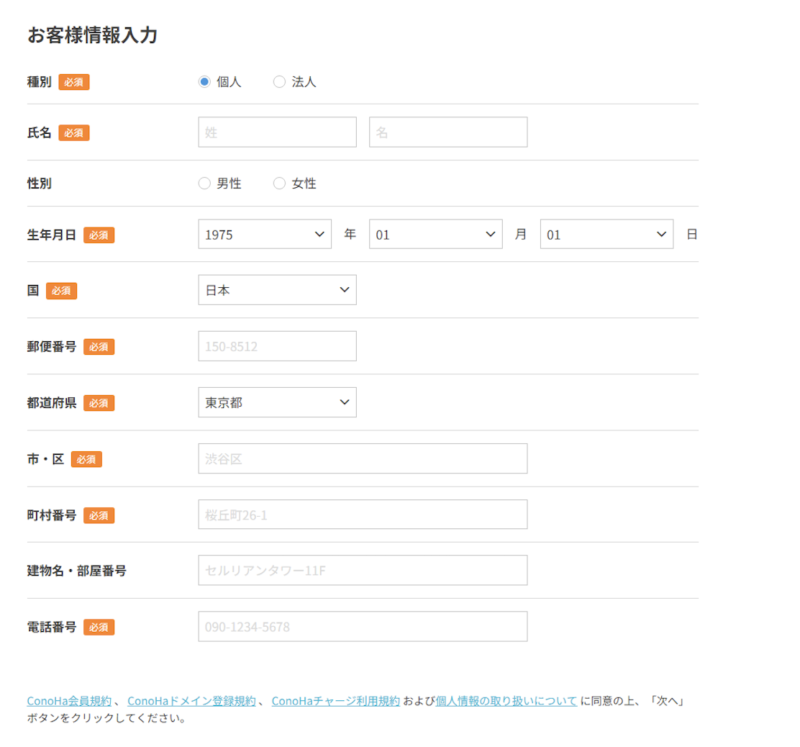 ③お客様情報を入力(電話・SMS認証あり)