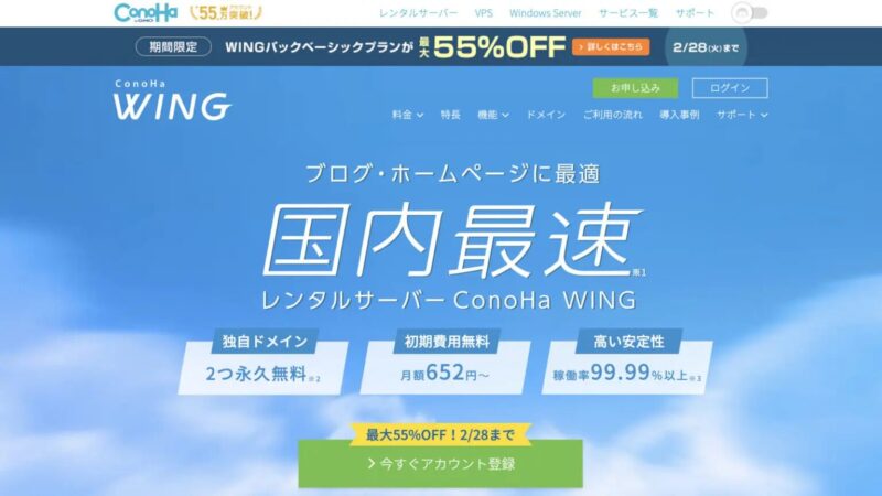 ConoHa WINGは、わかりやすい料金体系と使いやすい管理画面が魅力です。
